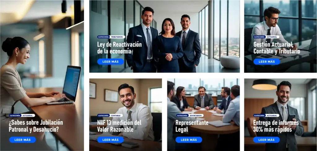 contable, tributaria, nómina, servicios, cálculos actuariales y fijación de precios de medicamentos, brindando soluciones integrales que combinan asesoría, ejecución operativa y software propio especializado para cada actividad.